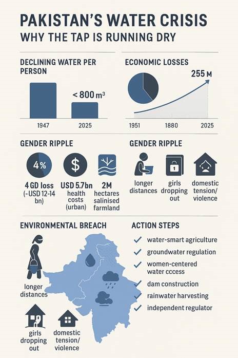 As Pakistan crosses the threshold of 255 million people in 2025, the most critical question facing the country is no longer solely about food, energy, or even traditional security. It is water or, more precisely, its alarming scarcity.
