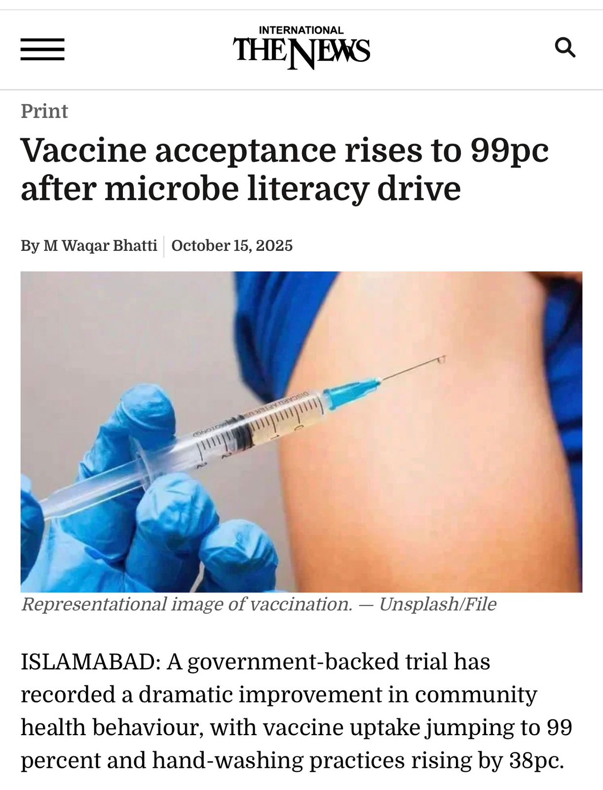 Vaccine acceptance rises to 99% in Sargodha after Microbes Literacy drive.